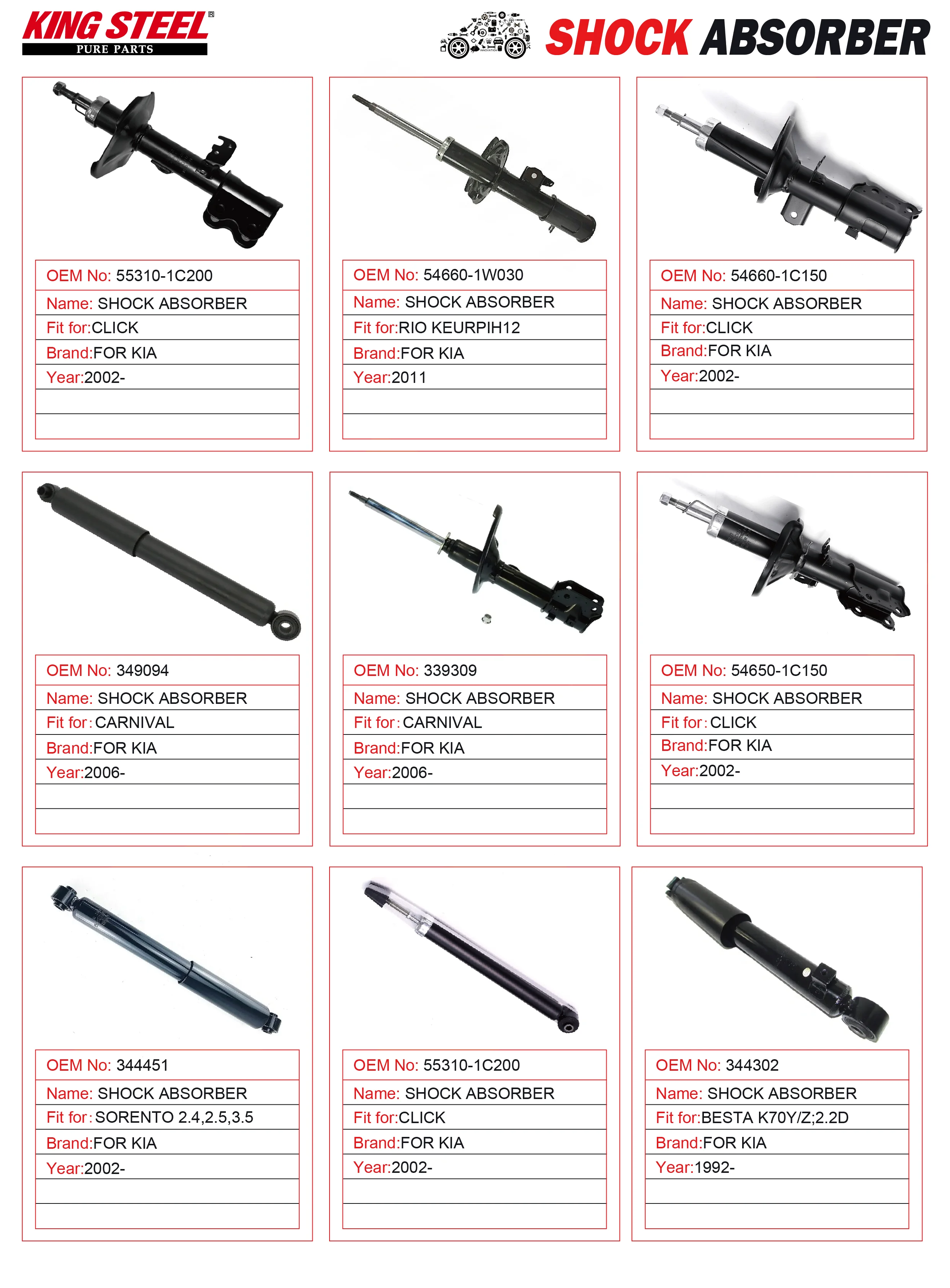 KINGSTEEL OEM 48520-13110A 48520-13130A 48520-13130B 48520-13150 A0943-44208 Left Front Car Shock Absorber for COROLLA NZE161